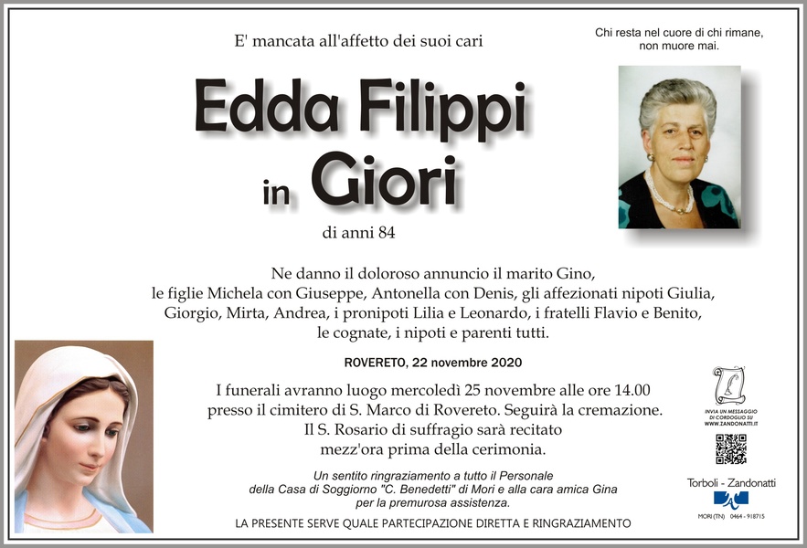 Cristiane e sincere condoglianze. Cecilia Garniga e famiglia