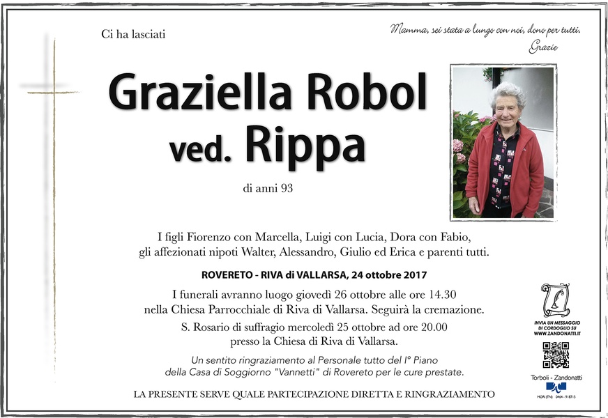 a Luigi Dora e Fiorenzo porgiamo le nostre più sentite condoglianze Nella Armanini, Grazia e Marta Fattor