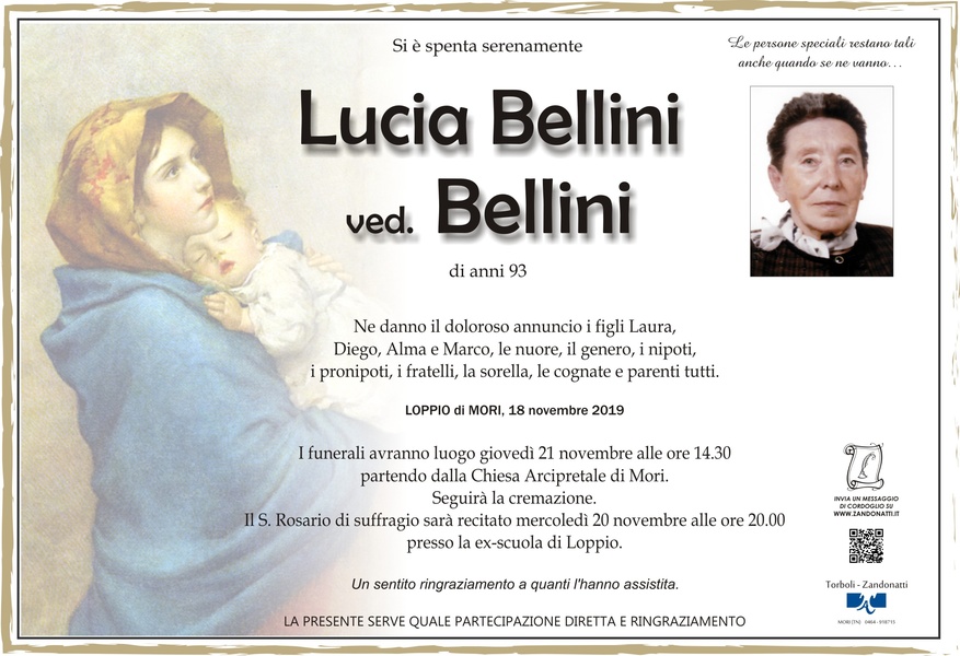 Sentite condoglianze alla famiglia Bellini per la perdita della cara mamma.