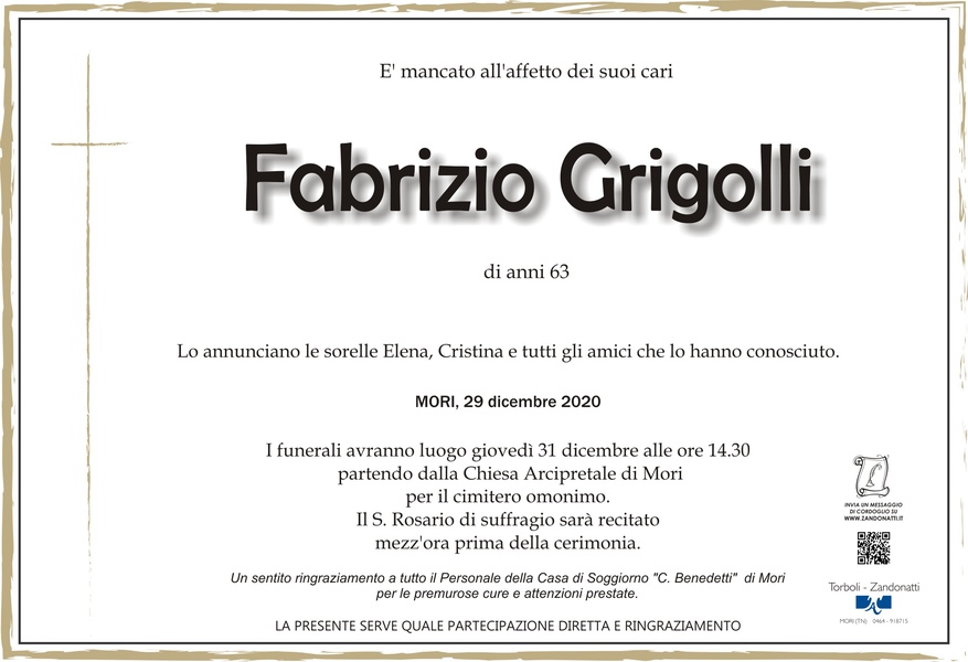 Alla famiglia Grigolli sentite condoglianze