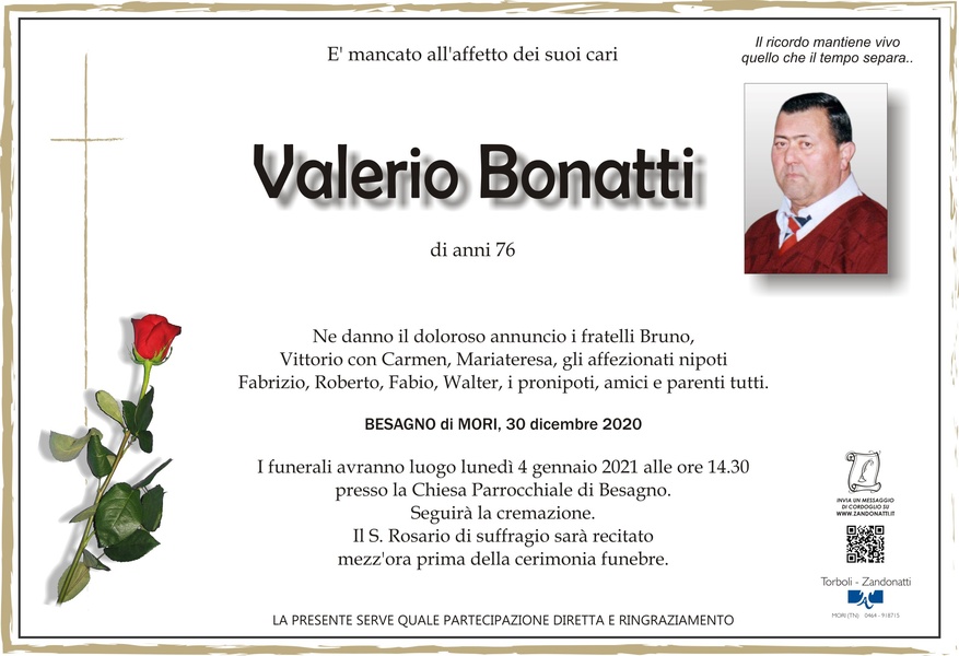 Cari fratelli Bonatti ricordo con tenerezza il vostro Valerio, anche se sono trascorsi tanti anni da quando lavoravo in ospedale, le mie più sincere e sentite Condolianze per la sua scomparsa