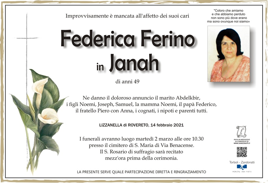 Carissimi ! Continuate il vostro cammino terreno, in suo ricordo ed esempio di moglie e mamma esemplare . Non siete soli . Riposi in pace .Antonela,Hassen e Yasser .