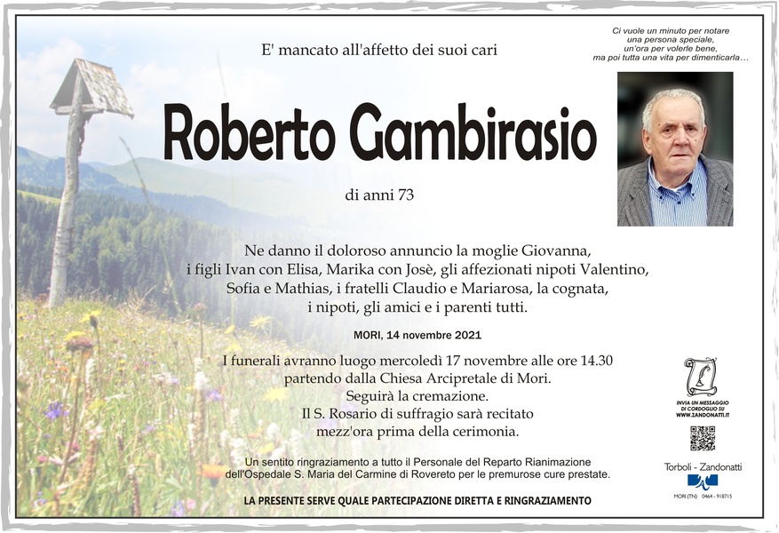 Siamo vicini al vostro dolore per la perdita di Roberto condoglianze da Giampiero Marisa e famiglia