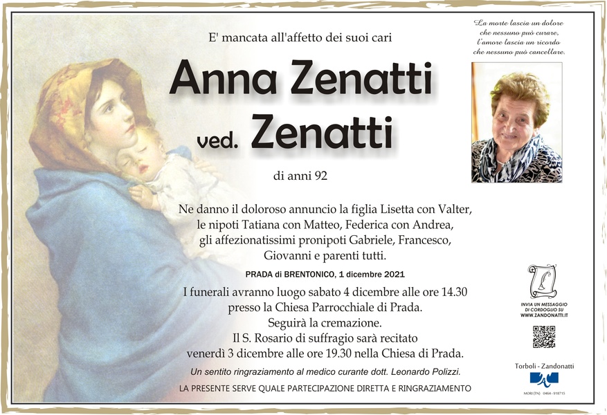 Vi porgo le mie sentite condoglianze per la perdita della vostra cara Anna.. Di cui serbo un ricordo indelebile fin da bambina... Un caro abbraccio Patrizia Veronesi e fam.
