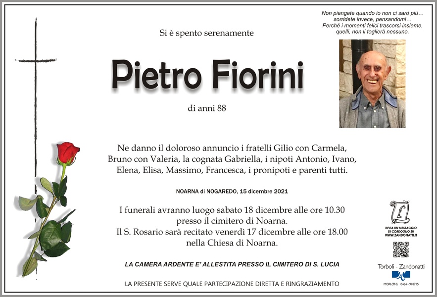 Ricorderò sempre il caro Pierino con tanto affetto. A tutti i parenti porgiamo le nostre più sentite e cristiane condoglianze. Rosaria e Luigi Pizzini