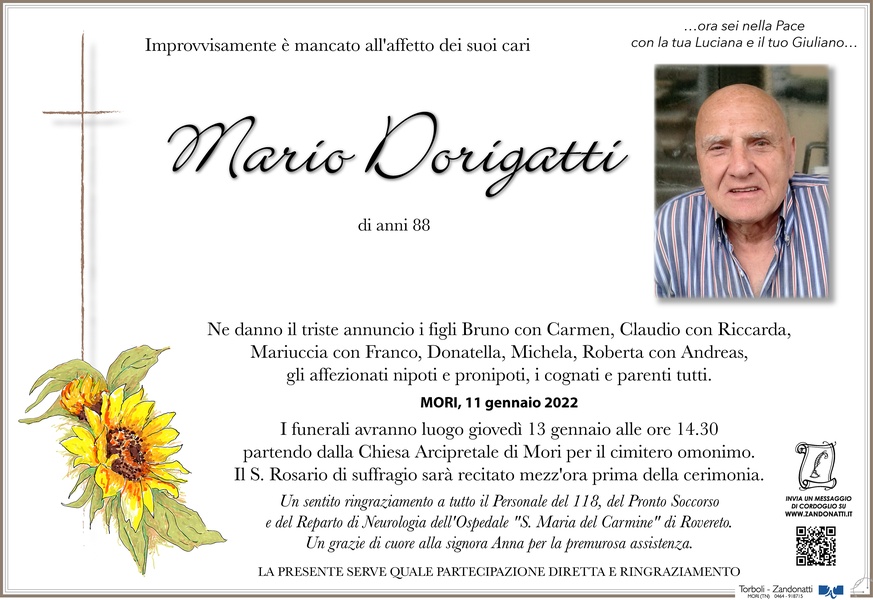 In questo momento di dolore per la perdita del vostro caro papà e nonno Mario porgo le più sentite condoglianze