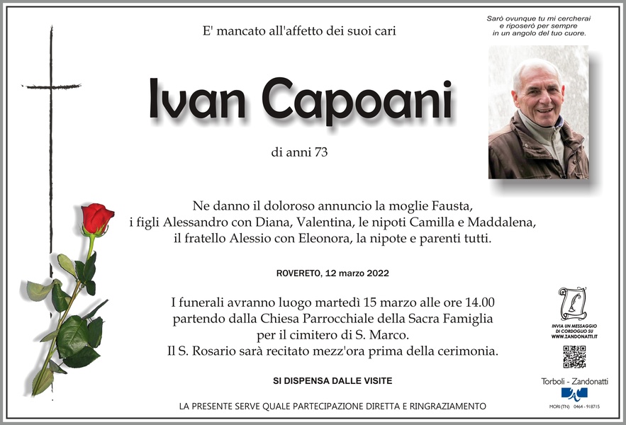 Abbiamo appreso con tristezza della perdita di Ivan. Nell'impossibilità di partecipare alla cerimonia di commiato ci stringiamo, con un affettuoso abbraccio, a Fausta e figli porgendo le nostre più sincere condoglianze. Maria Clara e Damiano Manica