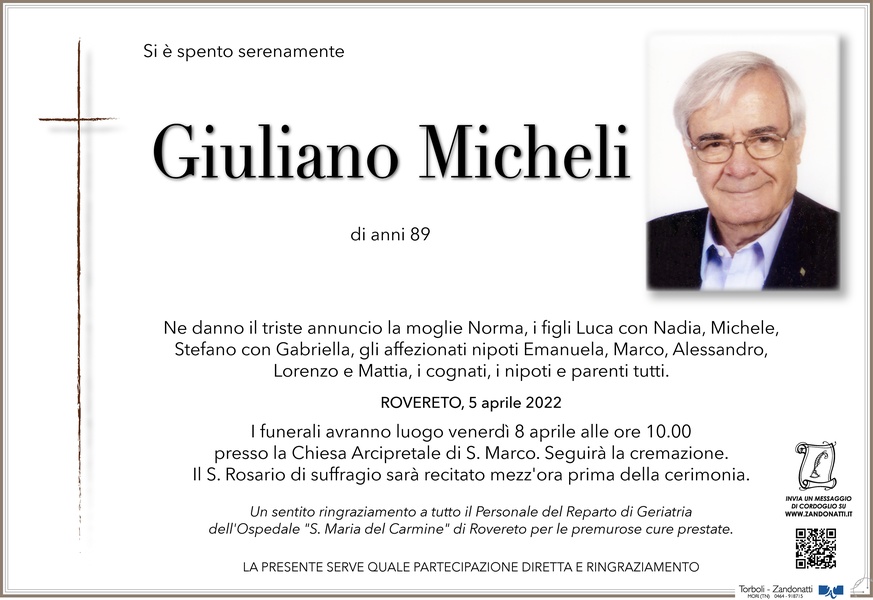 Partecipo al Vostro dolore, sono un collega "giovane" di Giuliano, ma che ha avuto tempo sufficiente per conoscerlo, apprezzarlo e volergli bene.