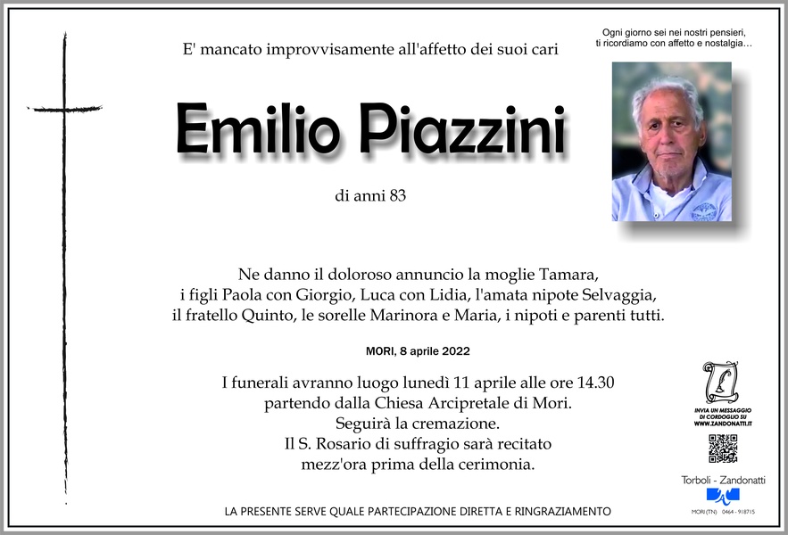 Vi siamo vicini in questo triste momento per la perdita del caro Emilio ,che ricordo con affetto, un forte abbraccio a voi tutti ,. Marco e Franca Zoller