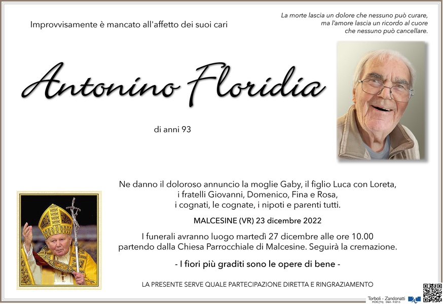 A Loreta e famigliari tutti le nostre sincere condoglianze