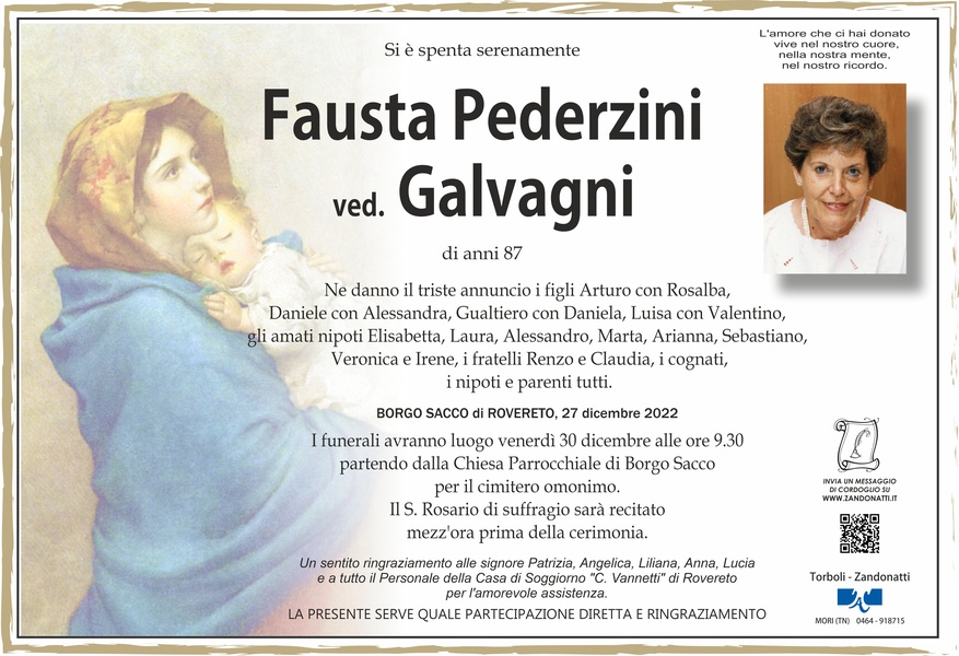 Condoglianze per la perdita della cara Fausta...che il suo ricordo rimanga sempre in chi le voleva bene