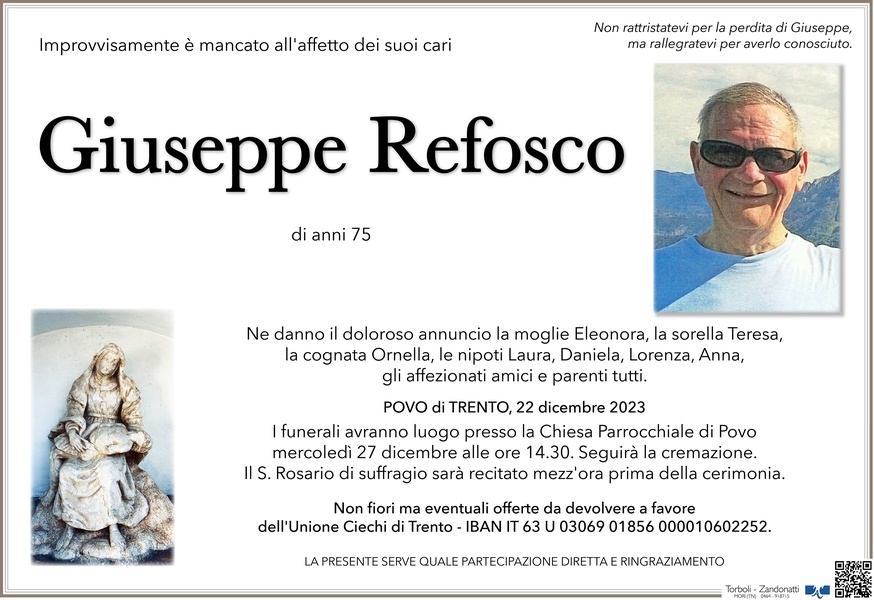 In questi momenti di lutto siamo tutti al vostro fianco nel cordoglio per la perdita del caro Giuseppe Un abbraccio Eleonora da Giampiero Lorenza e Massimo
