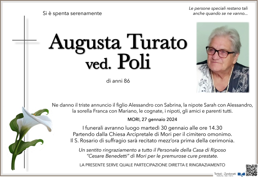 Ricordando la cara Augusta, porgo sentite condoglianze alla famiglia.