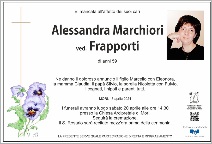 Carissimi, non esistono parole per esprimere il dispiacere per la Vostra immensa perdita. Ci uniamo al Vostro dolore e preghiamo per la cara Alessandra, porgendovi le più sentite condoglianze. Possa il tempo portarvi pace e i ricordi che avete condiviso con lei offrirvi conforto. Con affetto