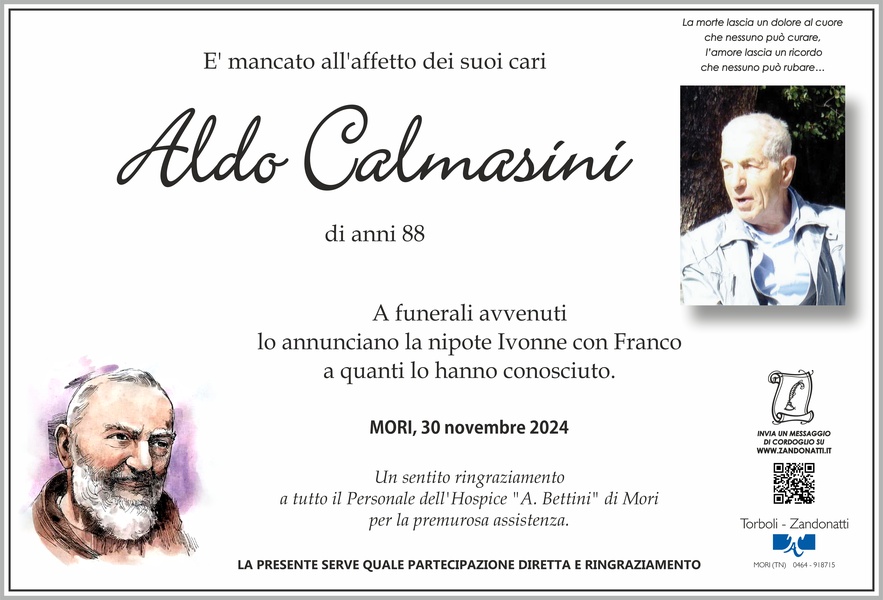 Ricordo Aldo quando negli anni sessanta organizzava assieme a noi ragazzini a Mori Vecchio uno dei primi presepi con movimenti in Trentino. Ci coinvolgeva tutti ad aiutarlo nella sua passione. Grazie Aldo fai buon viaggio. Sincere condoglianze a tutti i famigliari. Adriano e Miriam Zandonatti.