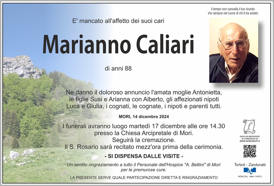 Dispiaciuto per la perdita del vostro carissimo Marianno, sono vicino a tutti voi in questo momento di dolore un abbraccio