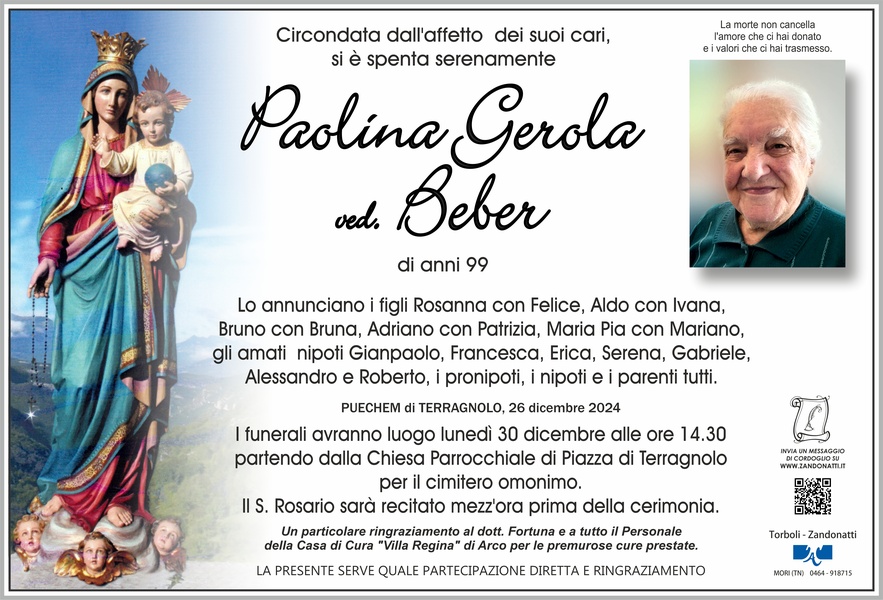 Cara Rosanna e familiari tutti, vi siamo vicini nel dolore per il distacco dalla vostra cara mamma Paolina, che ora veglia su tutti voi dal Cielo. Un abbraccio