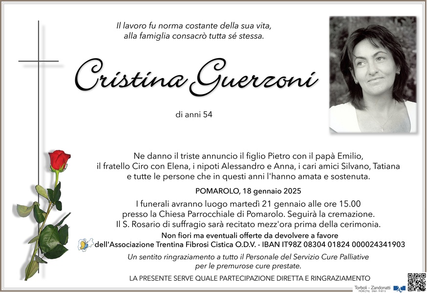 Cara Cristina, la tua scomparsa lascia un vuoto incolmabile , ma anche tanti bei ricordi come amica e collega di lavoro. Le mie più sentite condoglianze ai tuoi cari, sono sicura che da lassù saprai guidarli e proteggerli.