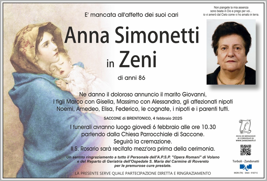 Partecipo commossa al vostro dolore Zeni Andreolli Nives Brentonico