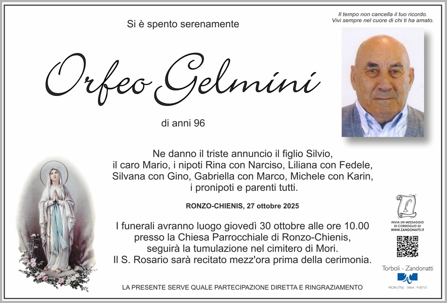 Con affetto vicino a Silvio la preghiera al caro. Orfeo a tutti voi sentite condoglianze