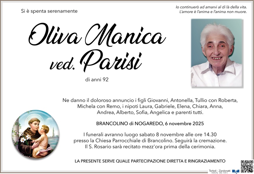 Affidando Oliva a Gesù Buon Pastore ci uniamo nella preghiera e porgiamo sentite condoglianze.