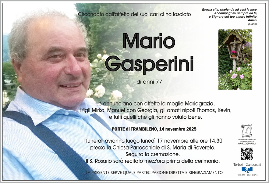 Vi sono vicina in questo triste momento x la perdita del vostro caro Mario porgiamo sentite condoglianze. Fam. Zanolli Benedetti Claudia