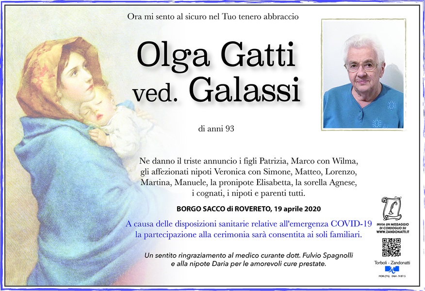 Il Signore ha accolto nelle sue braccia la tua cara mamma Olga, mamma affezionatissima e nonna amata. Vi ha lasciati dopo un lungo percorso regalato le da Dio. 'se mi amate non piangete...' (S. Agostino)