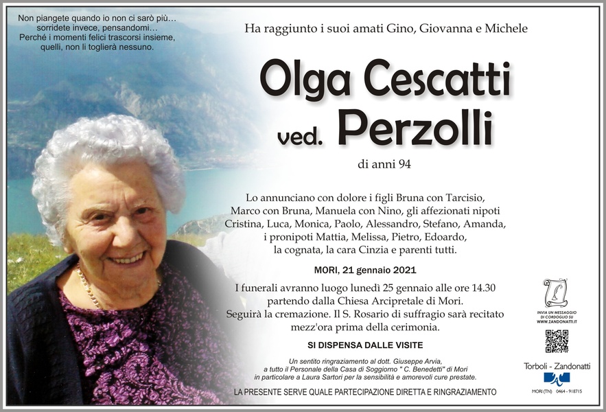 L’ultima parte di questo tuo lungo percorso di vita è stata la più difficile e dolorosa, ora hai raggiunto i tuoi amati. Che la terra ti sia lieve cara Olga. Ti ricorderemo sempre con affetto.