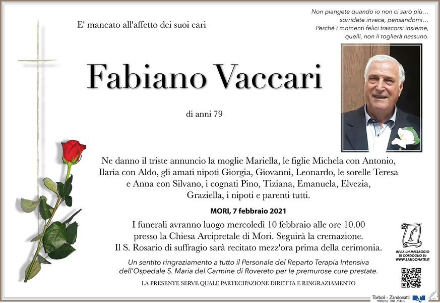 Sinceramente dispiaciuti per la perdita del caro Fabiano prendiamo parte al vostro dolore e porgiamo sentite condoglianze