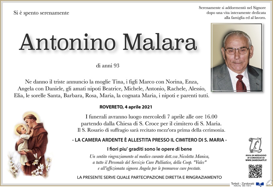 Porgo le piu' sincere condoglianze di cuore ai famigliari del caro Antonino.Jolanda.