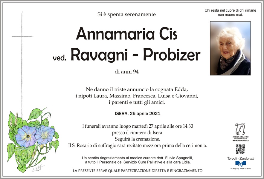 Le nostre più sentite condoglianze per la perdita della cara Annamaria ,la ricorderemo con tanto affetto. Lo staff della Fam. Cooperativa Isera.
