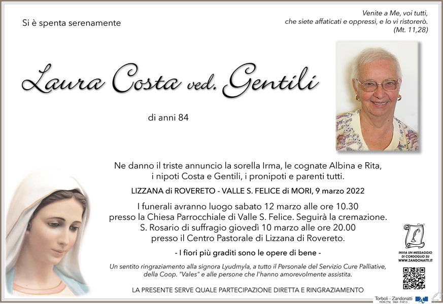 Con la preghiera in ricordo di Laura, alla cognata Rita e famigliari le nostre più sentite e sincere condoglianze. ANTONIO E MARIA PEDROTTI