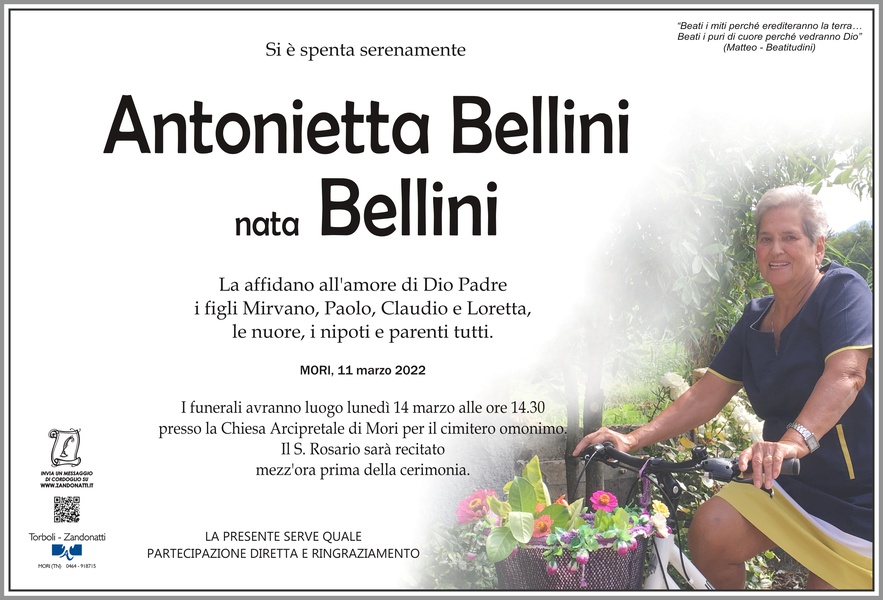 Cara Loretta e familiari, in questo momento vi siamo vicini con la preghiera ricordando la cara Antonietta come donna di fede e di preghiera, ora vi ricorderà dal cielo assieme al vostro papà.