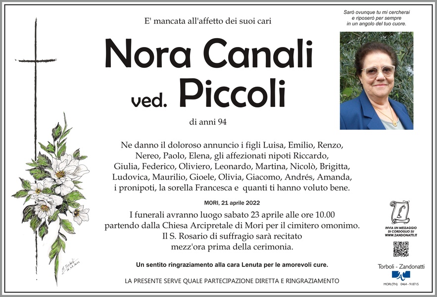 A tutti i familiari porgiamo le nostre più sentite condoglianze per la perdita della cara Nora. Adriano e Miriam Zandonatti.