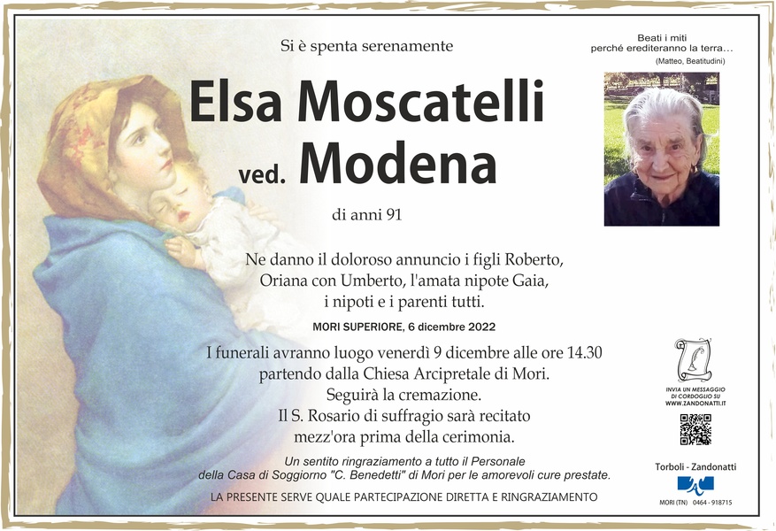 Le nostre più sentite condoglianze a Oriana ,Gaia e tutti i familiari per la perdita della mamma e nonna Elsa. Partecipiamo e siamo vicini al vostro dolore . Gabriella pedrotti e Giorgio Michelotti.Drena