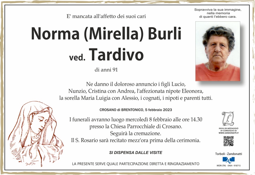 La famiglia Zeni Angelo e Patrizia porgono le più sentite condoglianze per la mancanza di Mamma