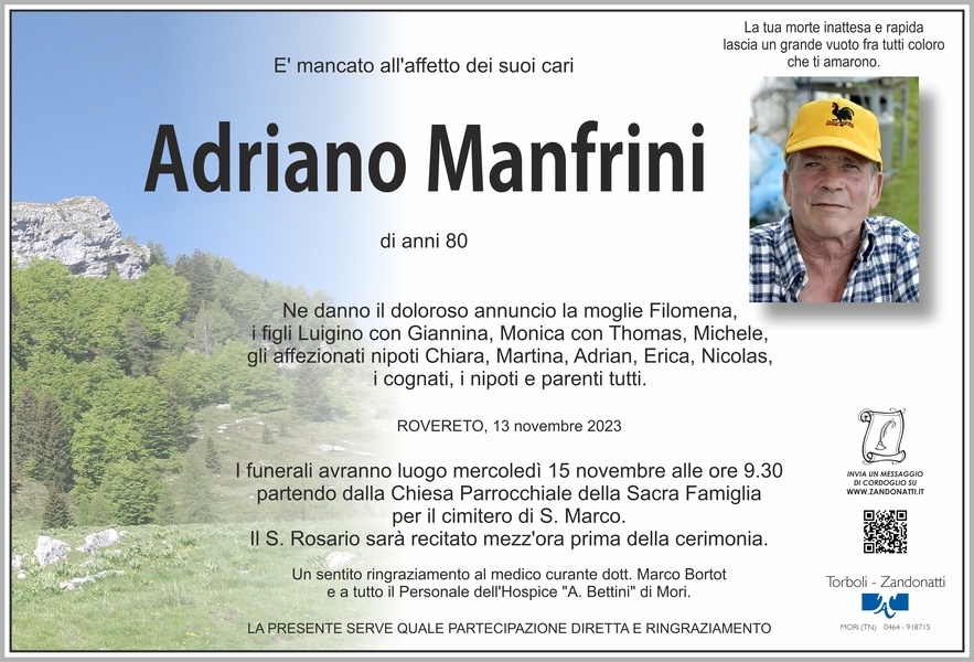 A Filomena e famiglia, le più sentite condoglianze per la perdita del caro Adriano. Franca Manfrini e famiglia.