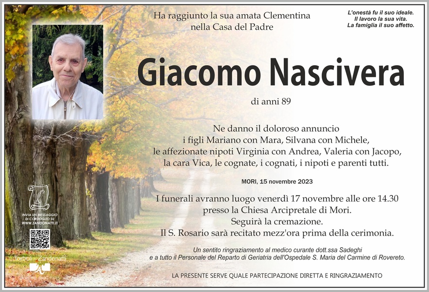 Vi porgiamo le nostre più sentite condoglianze per la perdita del vostro caro Giacomo.