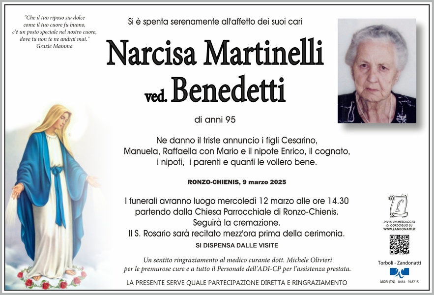 Il ricordo della cara Narcisa rimarrà nei nostri cuori e di tutti coloro che le hanno voluto bene. Le nostre più sentite condoglianze a Cesare, Manuela, Raffaella e tutti i famigliari.