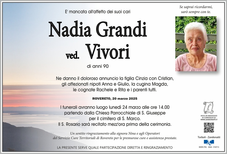 Cari Cinzia e Christian giungano a voi ed ai vostri figli Anna e Giulio le più sentite condoglianze per la perdita della vostra Cara Mamma e Nonna Nadia.