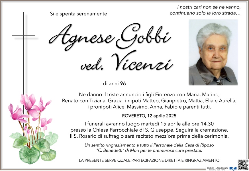 In questo momento vi siamo vicini per la perdita della vostra cara mamma Agnese porgiamo le nostre più sentite condoglianze Bertolini Mansueto e Monica