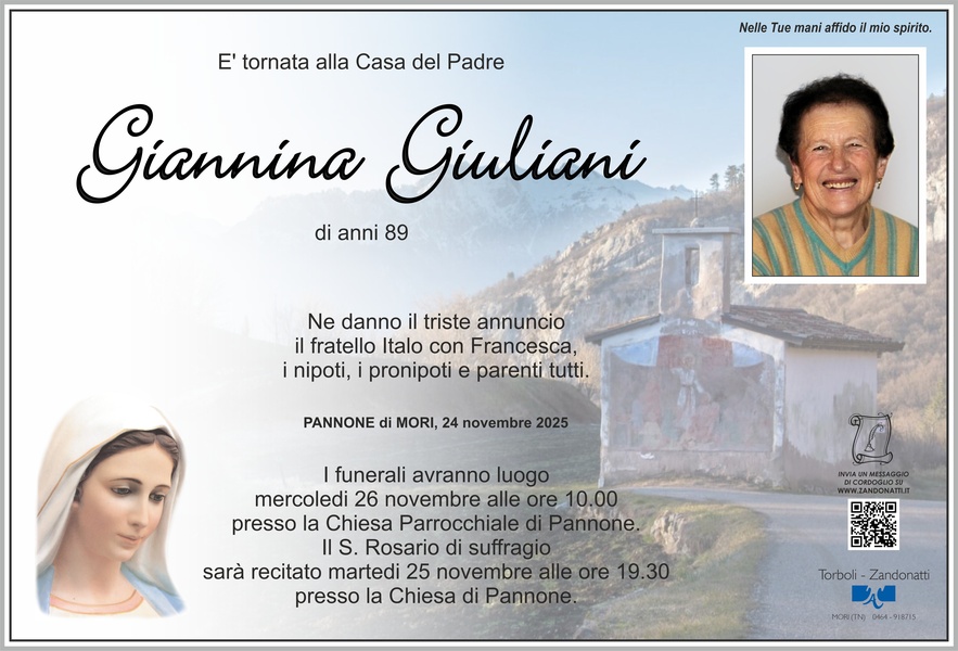 Ricordandola con affetto ci uniamo a voi, nel ricordo con la preghiera.Giannina è stata sempre di aiuto,per tutti .Chi l'ha conosciuta,conserva la sua presenza e sue parole buone.Grazie di ❤️.Fam Benoni Franco
