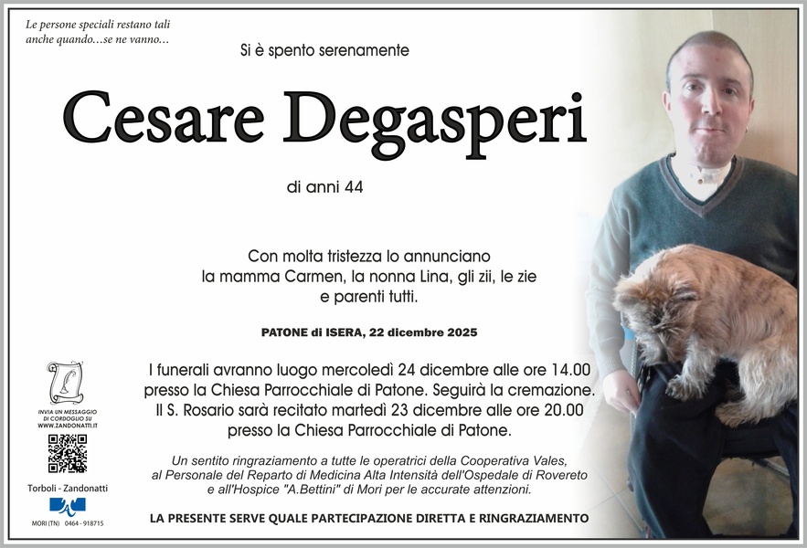 Cara Carmen, non ci sono parole per colmare il vuoto della presenza fisica di Cesare, ma ci consola la certezza che ora abita là dove non esiste più dolore, né pianto, né malattia, ma solo la pienezza della Vita. Il suo coraggio resterà per noi un esempio luminoso. Preghiamo il Signore affinché ti doni la pace che supera ogni umano sentire. Con immenso affetto. Luisa, Massimo e Selen Conzatti