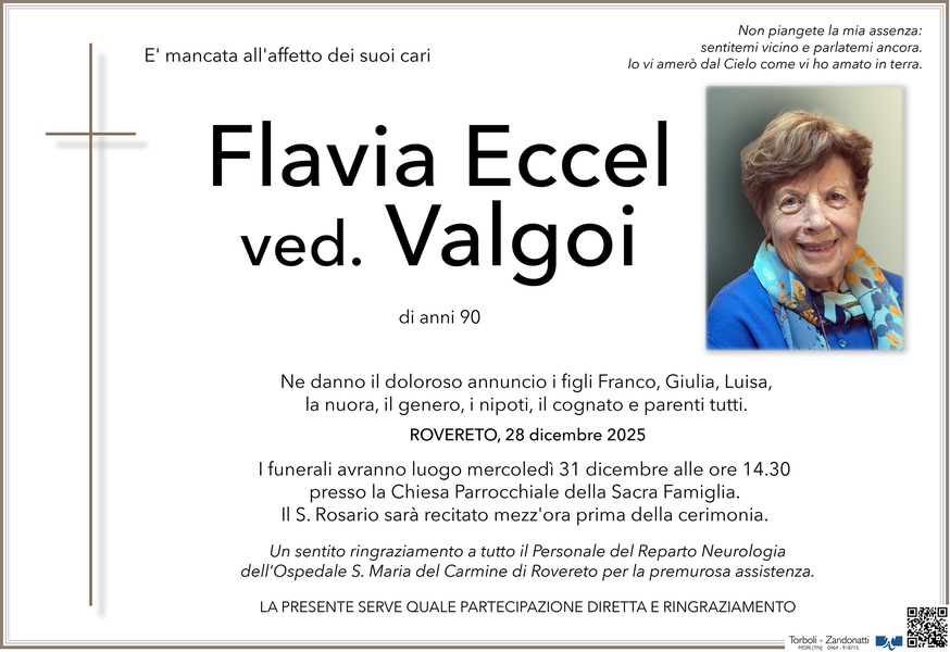 La cerimonia si terrà Mercoledì 31 Dicembre alle ore 14:30 presso la Chiesa di Sacra Famiglia di Rovereto.