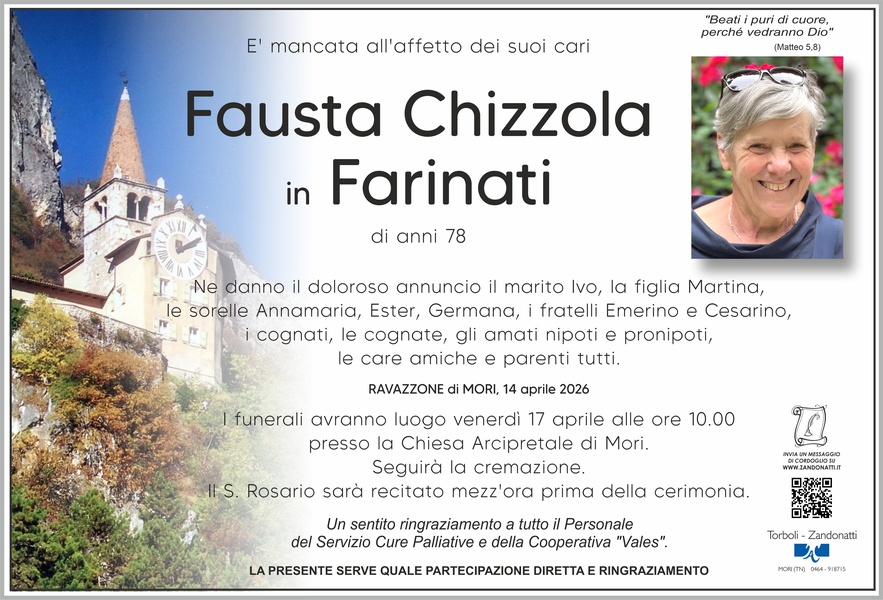Dispiaciuta per la triste notizia, porgo a Ivo e Martina e a tutti i familiari le mie più sentite condoglianze ricordando Fausta nella preghiera